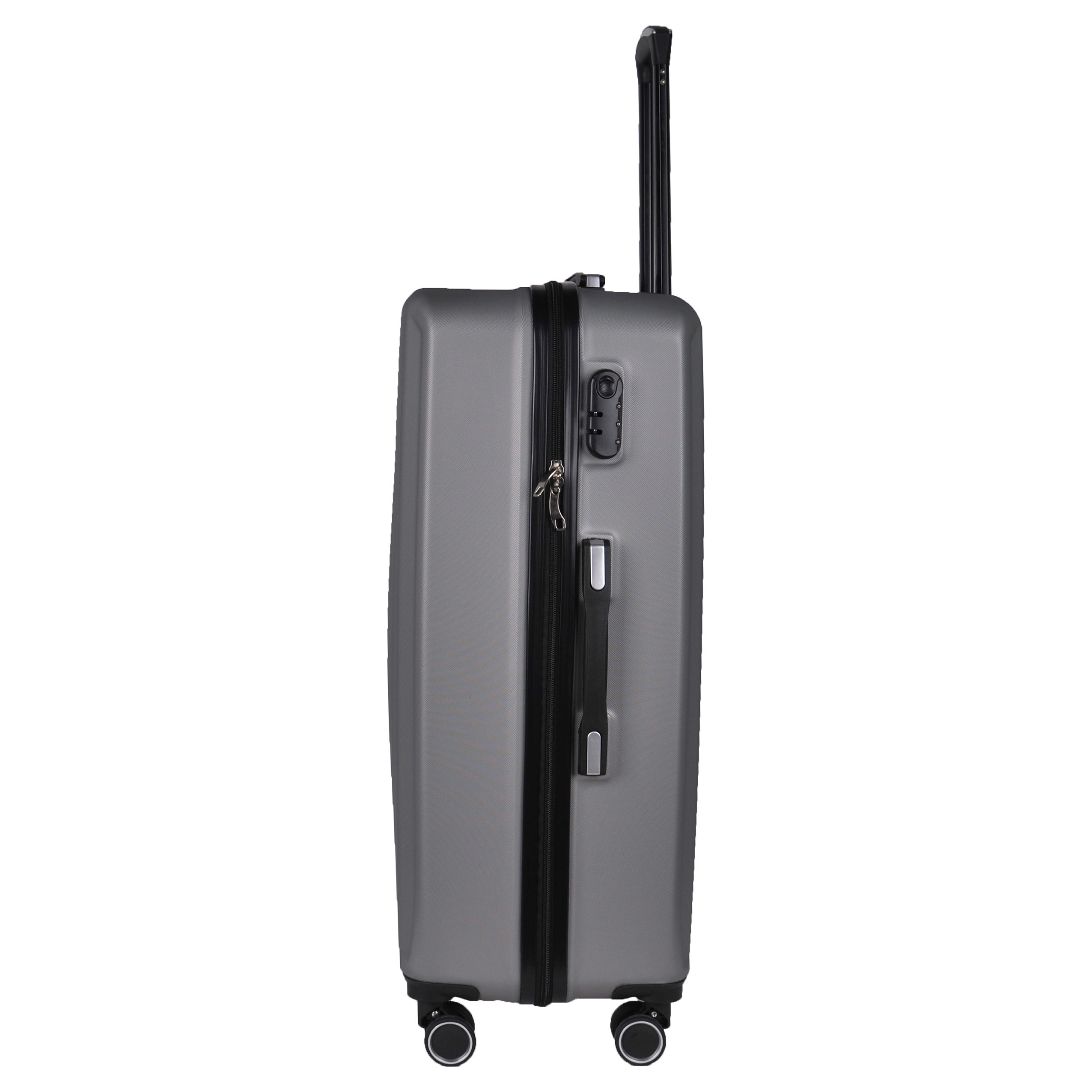 Lekka walizka na czterech kółkach obrotowych. Wykonana z twardego odpornego na zarysowania tworzywa ABS. Jedna część zamykana przegrodą z dodatkowymi kieszonkami, druga część zabezpieczana pasami spinającymi. Wygodna rączka, stelaż wewnętrzny, zamek szyfrowy. Dwa wygodne uchwyty do przenoszenia górny i boczny.