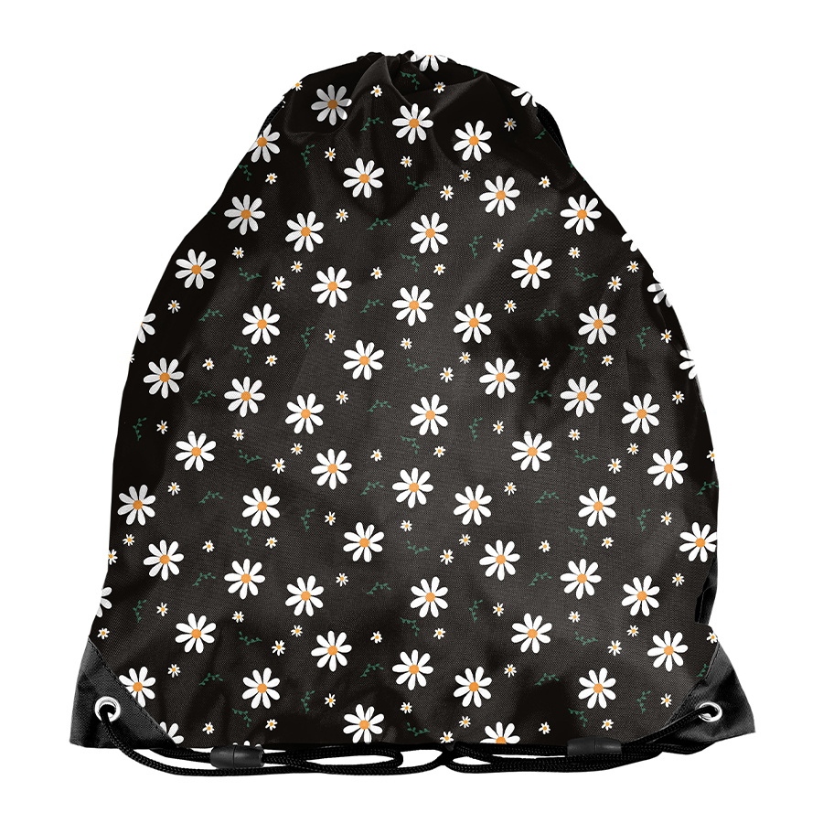 Worek na obuwie Daisy. Jednokomorowy worek o szerokim zastosowaniu. Świetnie sprawdzi się jako worek na obuwie, strój gimnastyczny lub drobny plecaczek. Model zamykany jest podwójnym ściągaczem, dzięki czemu dostęp do zawartości jest łatwy i szybki. Sznurki wyposażone zostały w przerywacze zapewniające bezpieczeństwo w przypadku splątania. Podwójne sznureczki umożliwią noszenie worka na plecach lub na ramieniu.