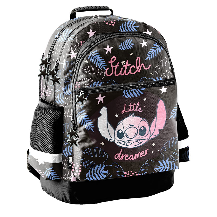Worek na buty Stitch – Little Dreamer. Bardzo lekki wyrób o różnorodnych możliwościach wykorzystania. Pojemna komora główna z zamknięciem na podwójny ściągacz umożliwi łatwy dostęp do zawartości. Sznurki zostały zaopatrzone w przerywacze, które gwarantują bezpieczeństwo w razie splątania. Podwójne sznureczki pozwolą na noszenie torby na plecach lub na ramieniu. Model stworzony jest do przechowywania butów, odzieży sportowej lub akcesoriów jako mały plecaczek.