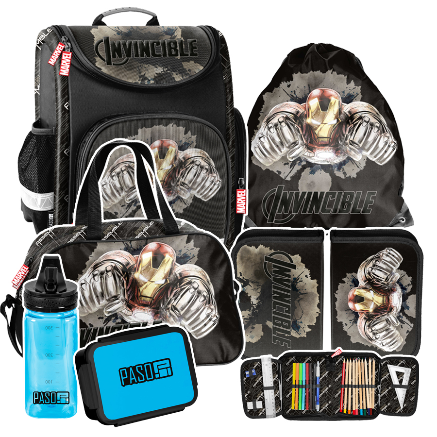 Tornister szkolny MARVEL, posiada jedną obszerną komorę z przegrodami, które pomogą dziecku utrzymać w nim stały porządek. Na przodzie jest zapinana kieszeń do schowania mniejszych rzeczy. Po bokach znajdują się dwie kieszonki: jedna z siatki, w której zmieści sie mała butelka czy bidon, druga zapinana na zamek. Ergonomicznie ukształtowane, sztywne plecy w odczuwalny sposób odciążają kręgosłup małego właściciela. Miękkie, regulowane i wyprofilowane szelki odpowiadają za właściwą i zdrową posturę dziecka. Tornister posiada usztywniony spód oraz elementy odblaskowe, które zwiększają bezpieczeństwo. Uszyty jest z materiału odpornego na przemakanie.